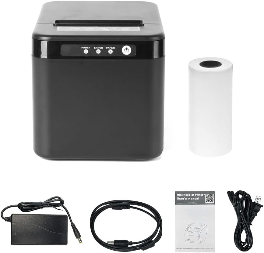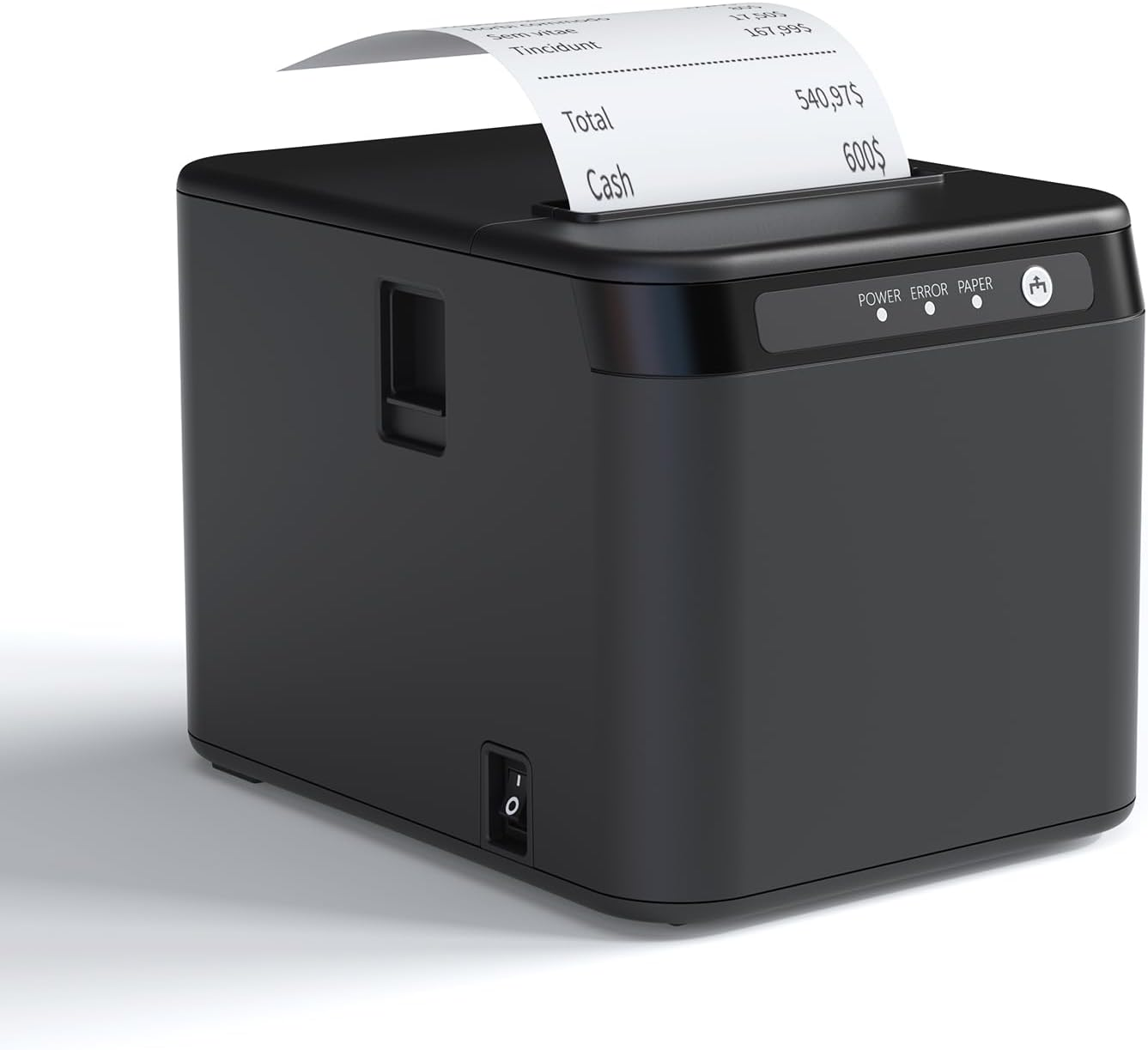 80mm Receipt Printer ESC/POS Thermal Printer Desktop Direct Print USB+LAN Connection High Efficiency with Auto Cutter Large Paper Bin